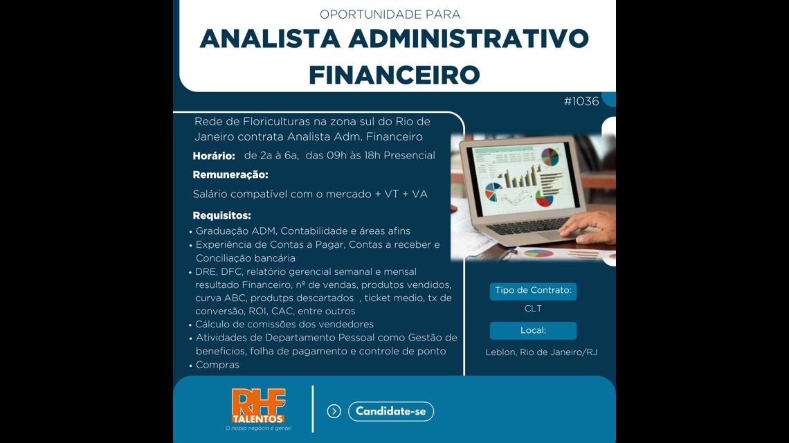 Analista Administrativo Financeiro para Gestão de 2 quiosques de flores no Barra Shopping e Shopping Leblon.