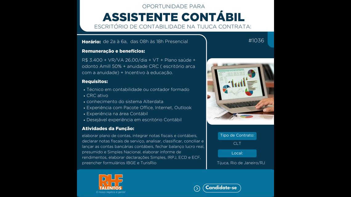 Escritório de Contabilidade na Tijuca/RJ contrata: